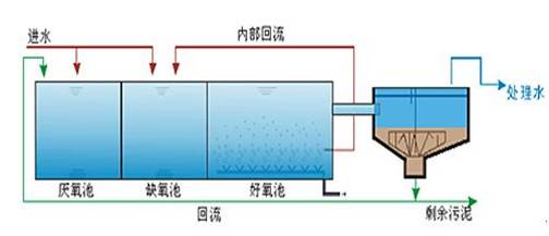 圖2 厭氧-缺氧-好氧法(A2/O)